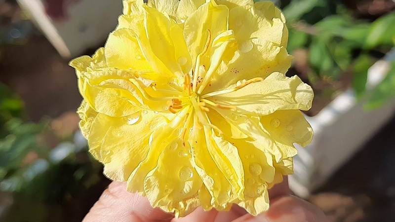 Hoa 12–18 cánh, vàng pha sữa, nhụy vàng đậm, bông nở bung to; dễ trồng – không kén đất. Tối ưu 26–34°C, lạnh kéo dài sẽ chậm hoa.